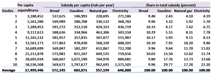 There is general agreement that the government should not subsidize the rich, especially when it involves waste and environmental damage. If, as the law envisages, half the total subsidy were distributed equally among, say, the lower 50% of the population, each of them would receive about 2.4 million rials or (PPP) $710 per year, which is about twice what they are getting now in the form of subsidies for the four items I have listed here.