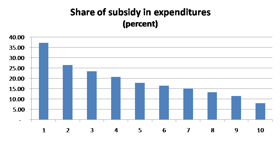 Note: Percent of subsidies in expenditures by deciles of net expenditures