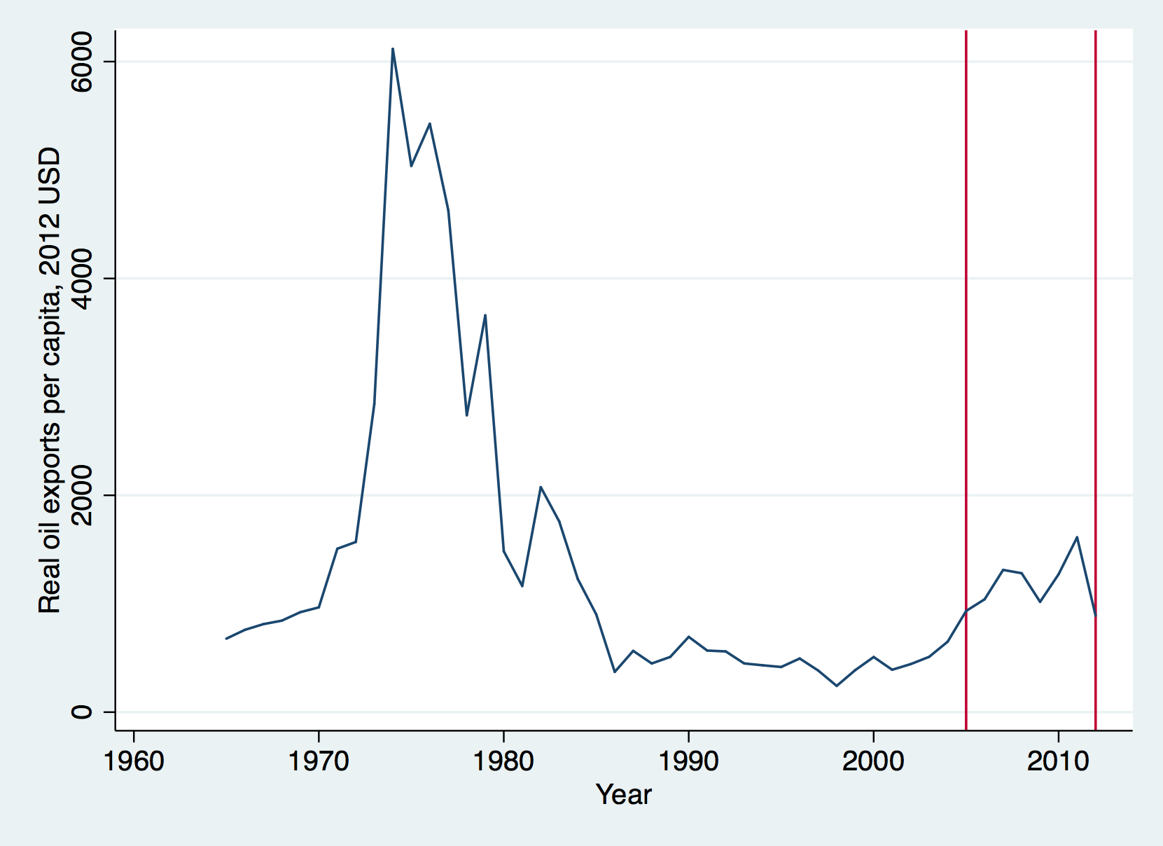 Figure 3.  Real oil revenues per person, 2012 USD.