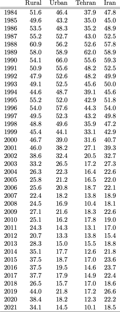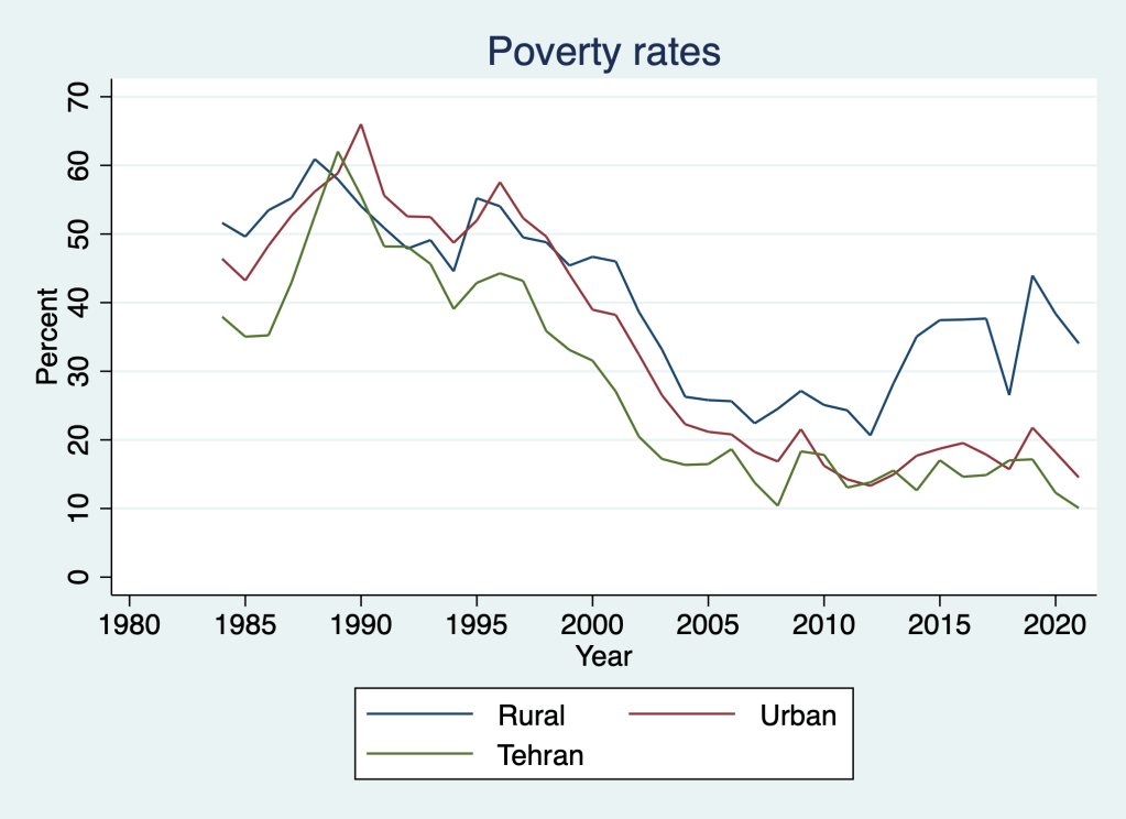 Figure 1. New poverty rates for Iran, 1984-2021.