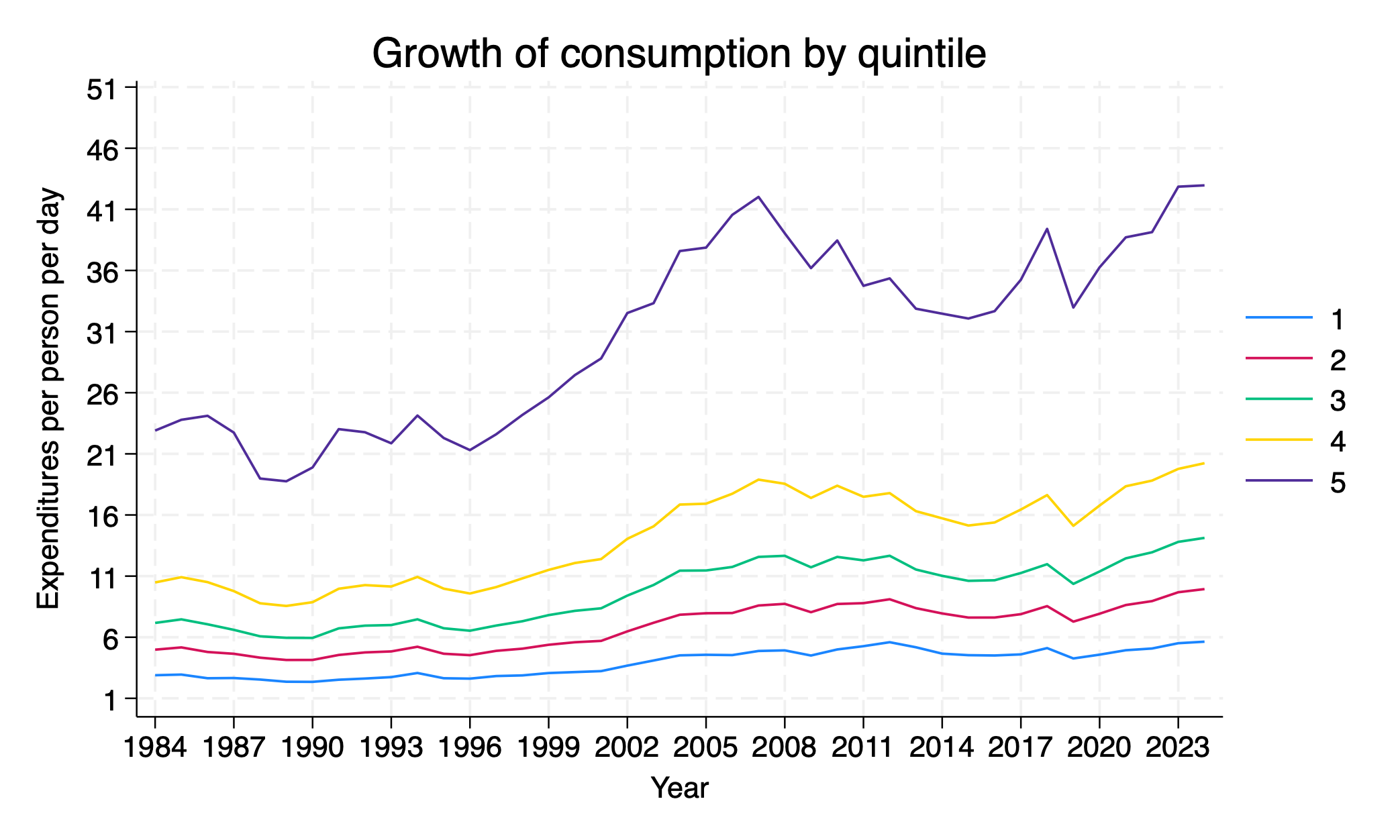 Figure 4. Real per capita expenditures by quintiles of per capita expenditures.